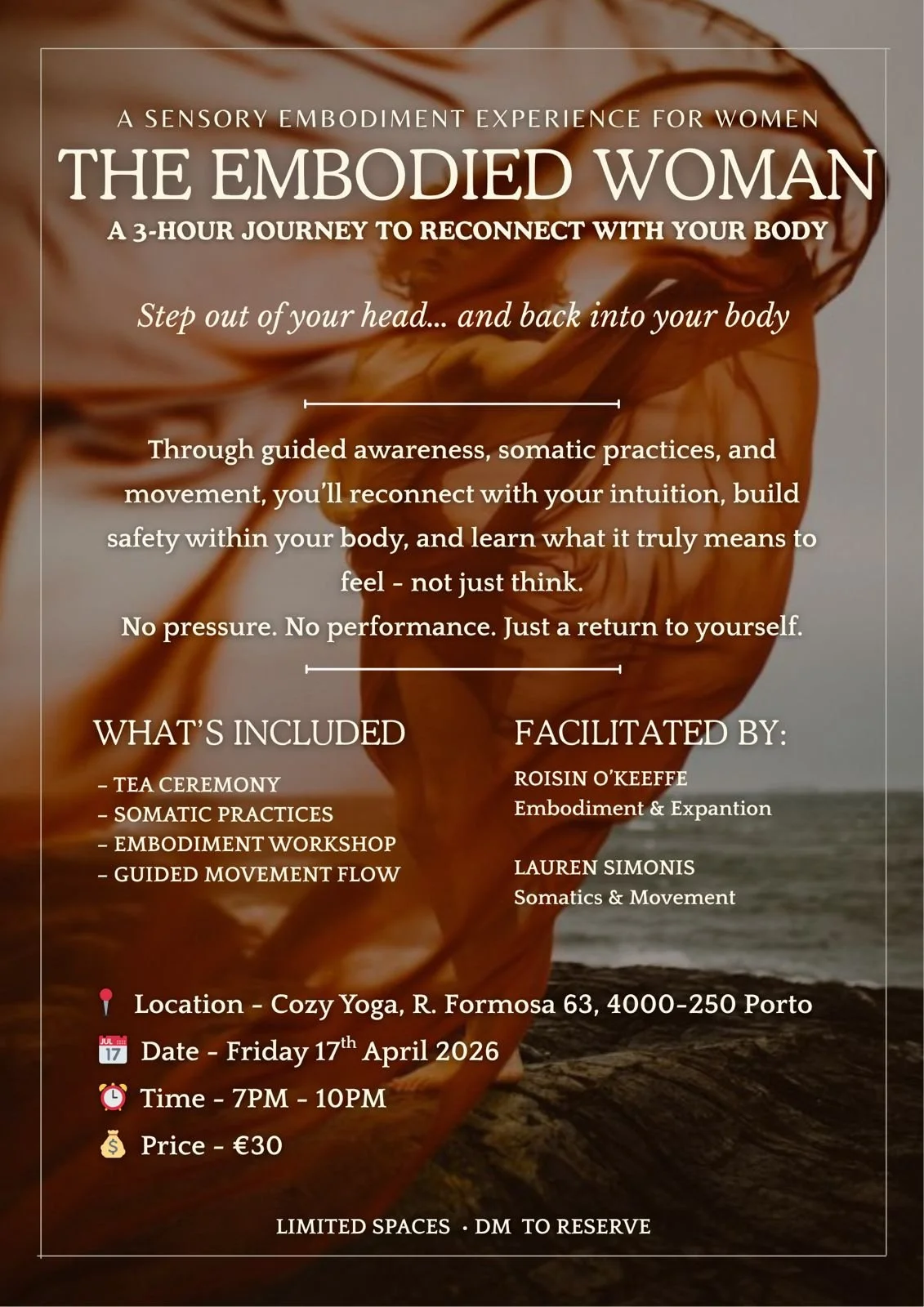 Through a blend of guided awareness, somatic practices, and gentle movement, you’ll begin to notice what it actually feels like to be in your body… rather than just thinking about it.
