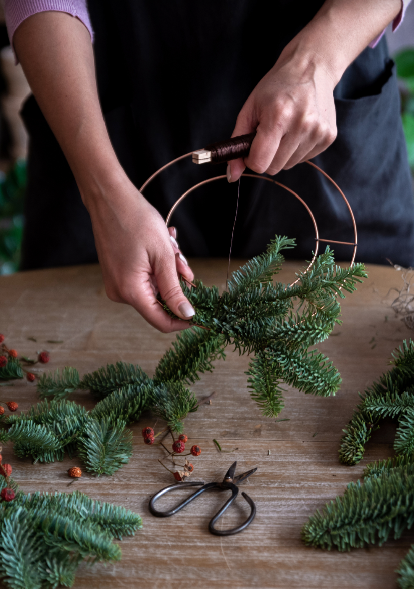 Please accept our invitation to share this cozy moment and create your own Christmas wreath. We will use various fresh, natural materials to create a beautiful holiday decoration just the way you like it. Afterward, the wreath is yours to hang on your front door, display on your dinner table, or even add candles to for the Advent season. Escape the Christmas hustle and join us as we create our own cozy, holiday space where our hands and minds can get creative and our hearts can rest and breathe the real peace of the holiday season.